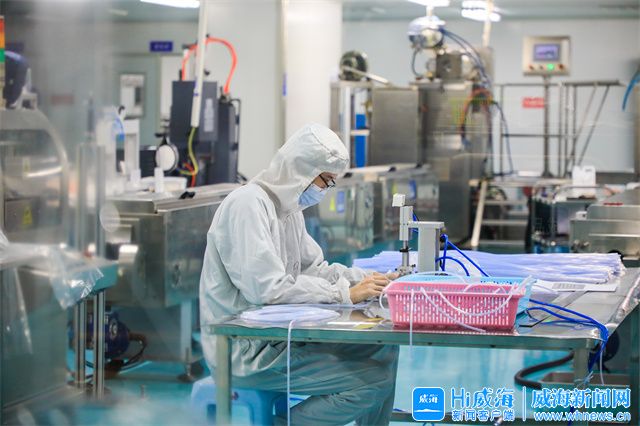 在威海世創醫療科技有限公司生產車間內,工作人員正在生產組裝微創引流系列產品。